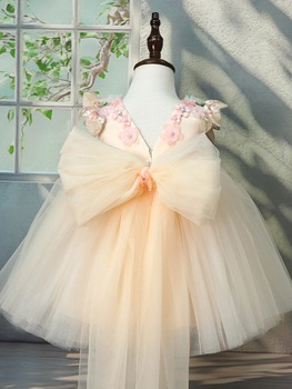カスタムメイドのしっかりとしたフォーマルな子供用ウェディングドレス、夏のフラワーガール用ドレス、刺繍入り、子供のショー用